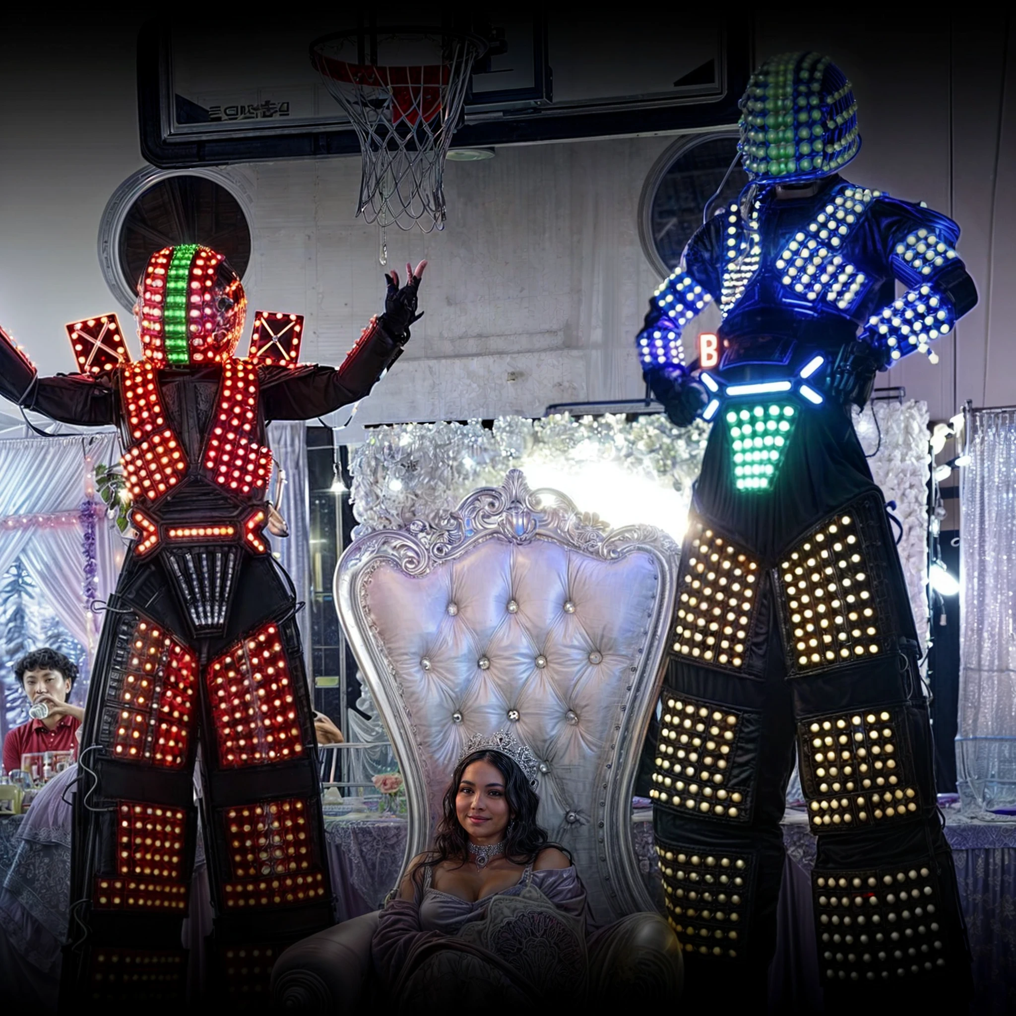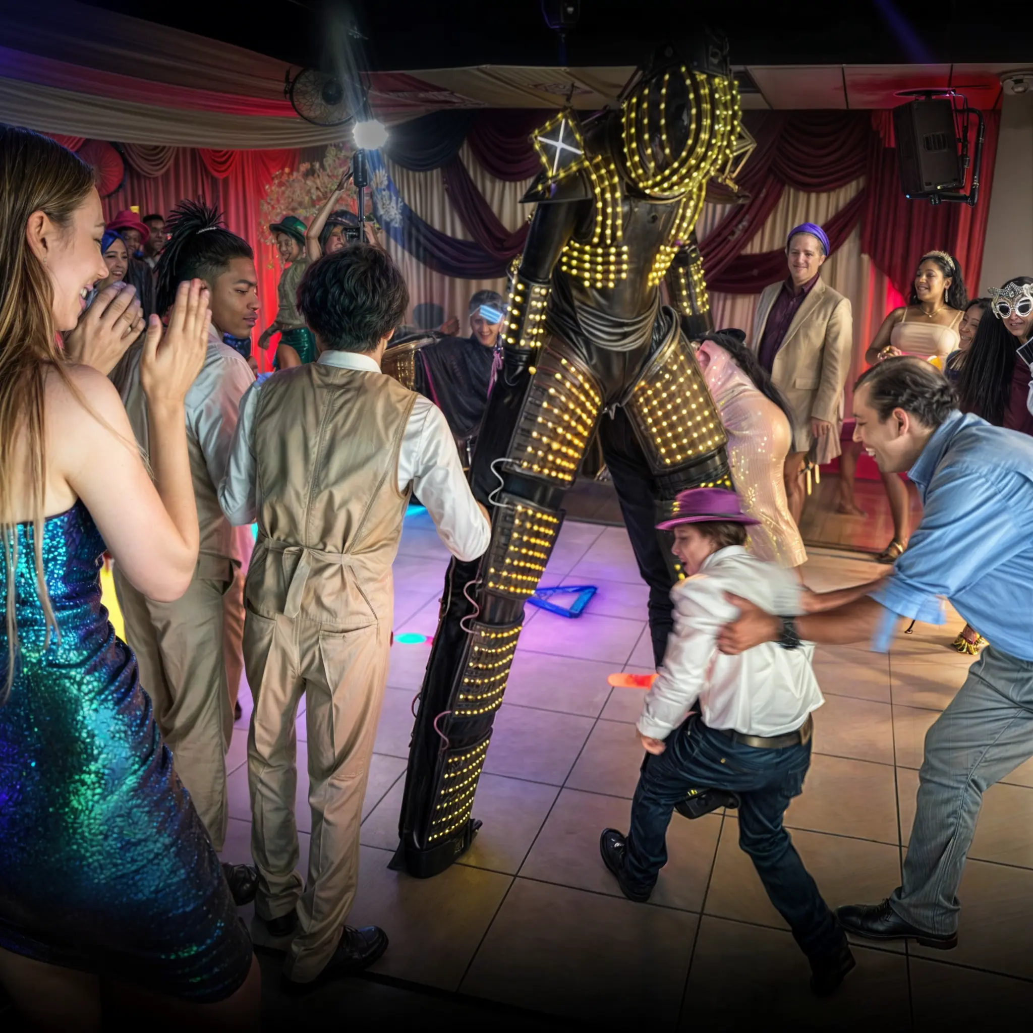 Create an intense party within your own party with dancers, LED robots, and drummers.
